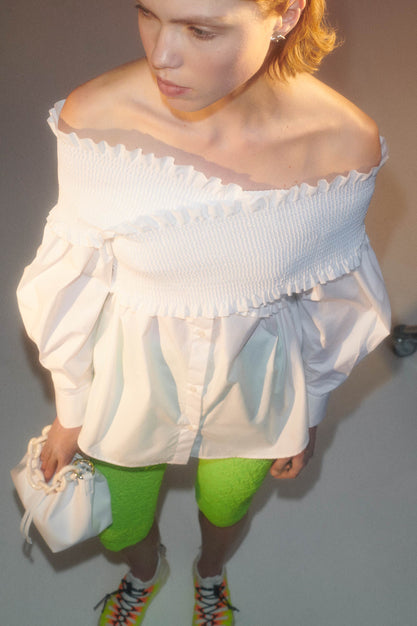 Following a flow of free associations, the collection’s aesthetics are increasingly graphic, in a constant interplay of colours and shapes, of artsy quotes that become an obsession.