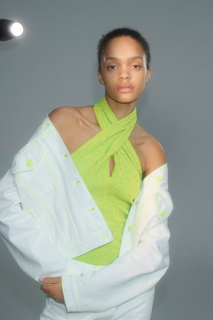 Bright blues, fluorescent lilacs, fuchsia, orange and greens. The fluo highlights and charged tones so typical of MSGM are back.