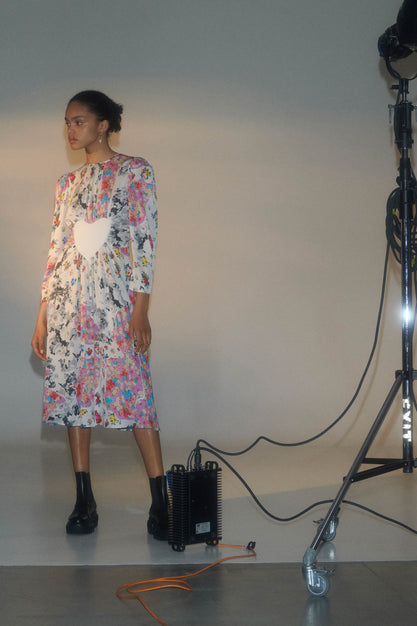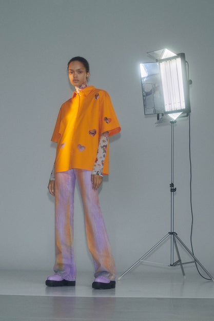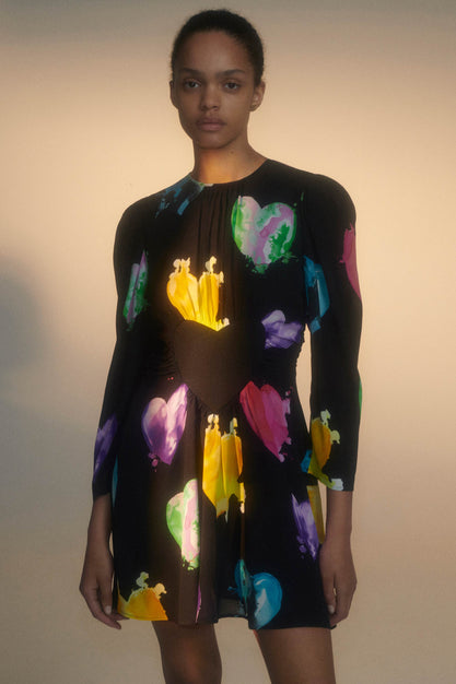 From diamond-shape motifs, like a new argyle, inspired by the work of Paolo Gonzato, to flowers impressed on torn “wallpapers” by the Artist Gabriel Orozco. Inspired by Jim Dine's paintings, hearts become MSGM's seasonal statement for a universal and self-love.