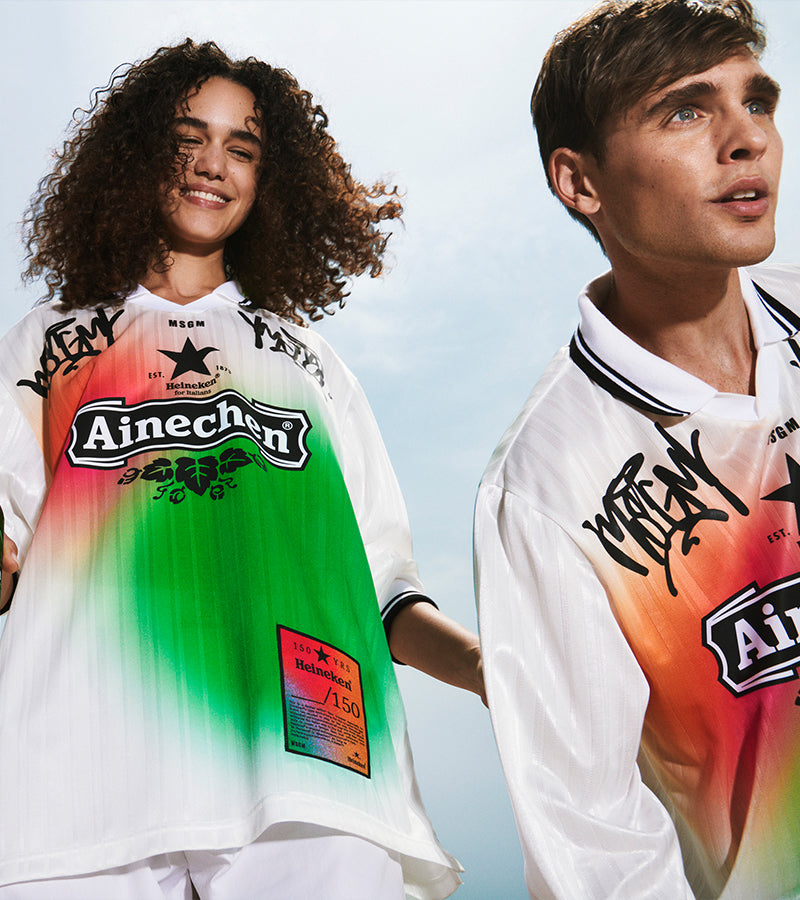 MSGM & Heineken® celebrate the 150th anniversary of the iconic beer brand with a special collaboration. Since Heineken is mostly known as Ainechen in Italy, MSGM and Massimo Giorgetti went 100% on it to create a limited edition capsule collection that embraces how Italians mispronounce the brand in Italy.